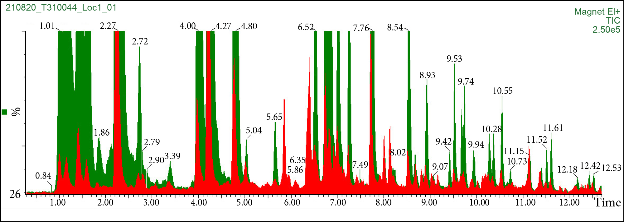 | Carrier gas | Helium 5.0 | Oven temp. | 220°C |